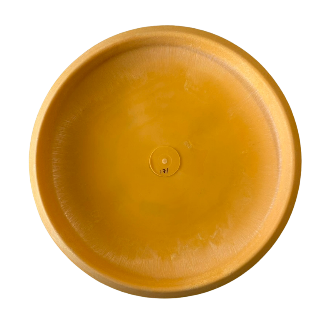現在市販されている超ソフト系パターの中でも、ガムパットはその先駆けとなったモデルであり、ディスクゴルフの創始者である『ステディ・エド』が愛用していたことでも知られています。ちなみに『ブローフライ1(Blowfly 1)』もこれと同じ形状のディスクですが、あちらは(イノーバ社の)ブリザード・チャンピオンのように、素材のプラスチックに気泡が含まれているのが特徴です。