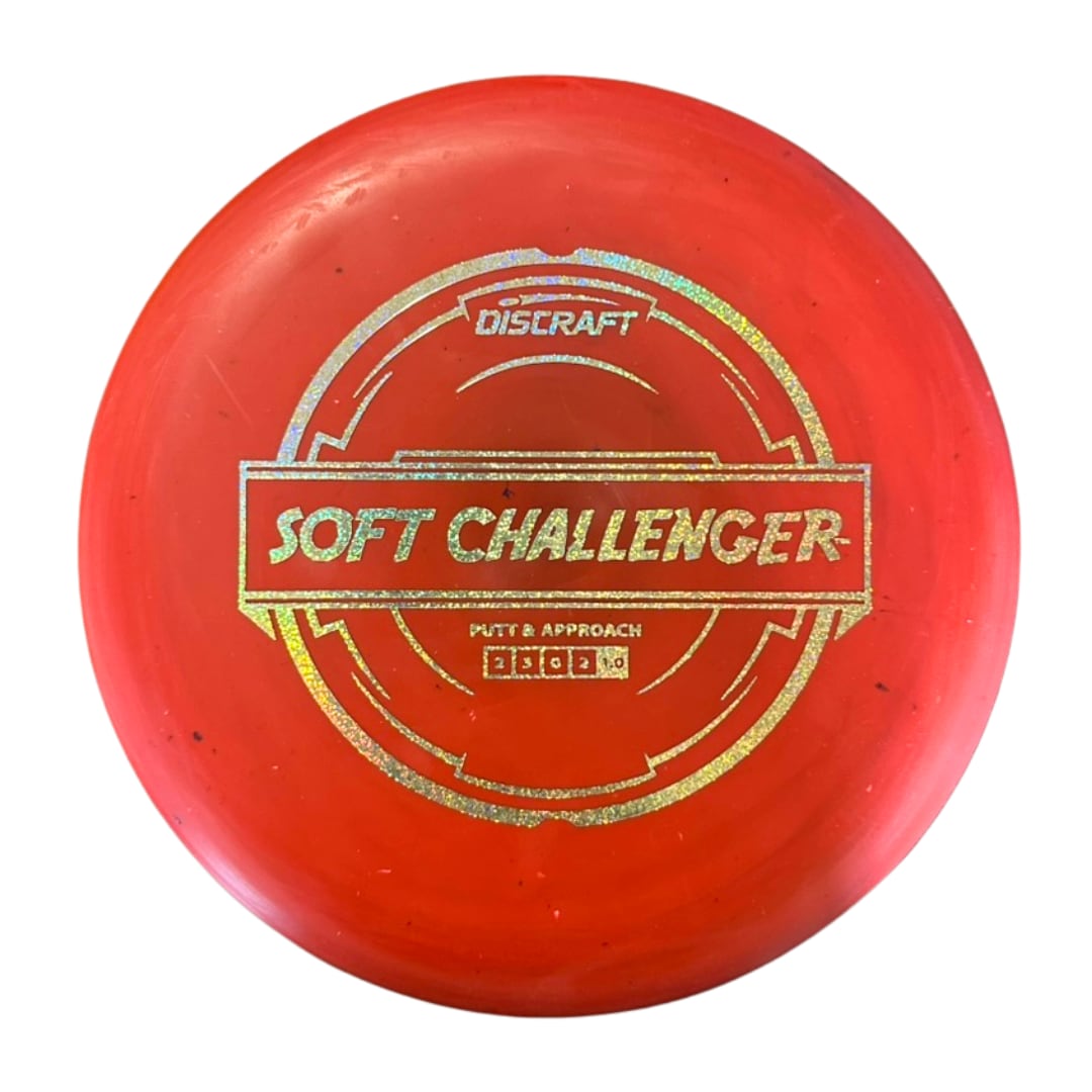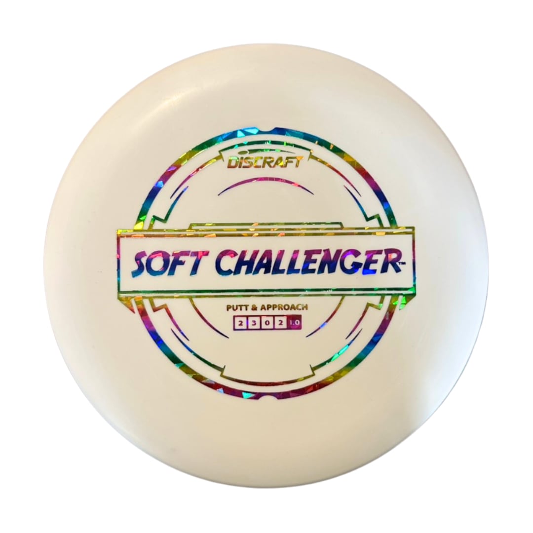 The Challenger is a tall, overstable putter with a deep rim and a tiny bead. It has a Discraft stability rating of 1, and as an overstable putter is able to handle long approach shots without turning over. This putter is popular for advanced disc golfers. The Challenger is available in inexpensive Pro-D plastic, soft X plastic, and the high quality premium FLX plastic.