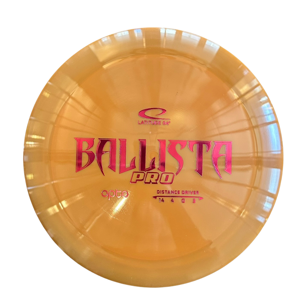 Opto plastic Ballista Pro offers maximum durability with a clear premium look. It holds its overstability well and resists wear, making it reliable for high-power throws. The Latitude 64 Ballista Pro in Opto is a staple for consistent long-range drives.