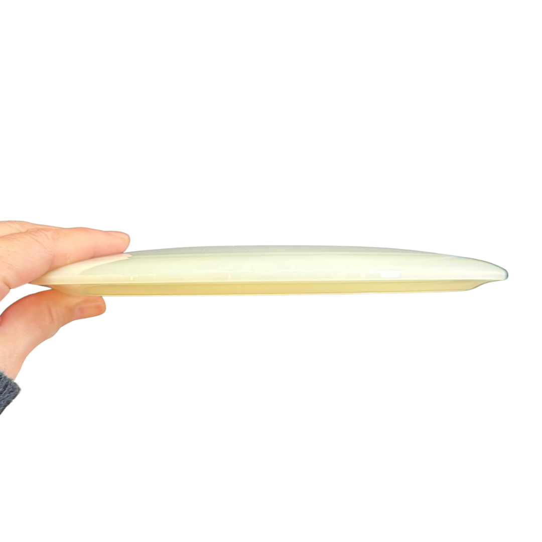 オプトライン・プラスチックのRiver(リバー)は、透明感のある丈夫なプレミアム混合素材を採用しています。リバーの持ち味である『高い滞空性能(グライド)』と『アンダーステーブルな飛行特性』を際立たせ、飛距離の長いターンオーバーショット(右に曲がり続けるショット)でも容易にラインを操ることができます。オプトラインのRiverは、安定したコントロールショットを求めるプレイヤーにとって、長期間愛用できる一貫性の高い選択肢です。